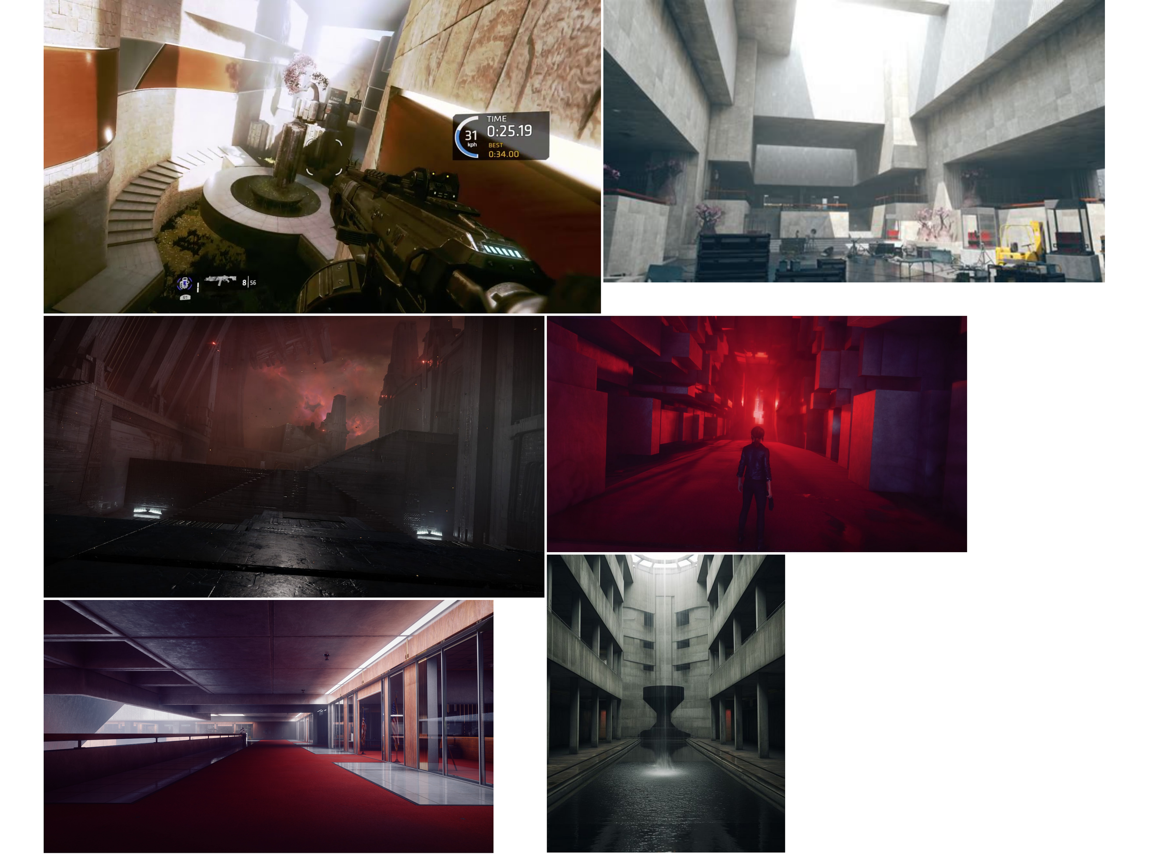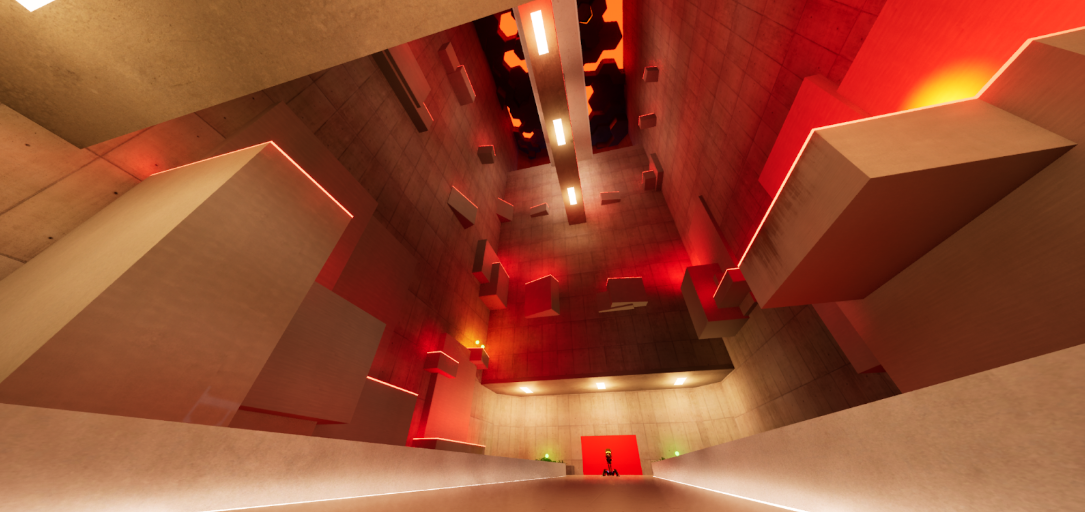 My primary inspiration for this level was Control's brutalist architecture and environmental storytelling. I focused on balancing fast movement with large, vertically challenging level sections while ensuring navigational clarity and varied play spaces. I prioritized making each section feel different while gradually increasing complexity through combat and platforming challenges.