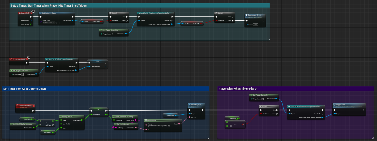Lockdown Door System: A problem I faced was needing a scalable way to halt player progress until all turrets in a section were eliminated. I developed a simple array-based system where I assigned each door multiple turret objects, opening only when the array was empty (meaning all turrets were destroyed).