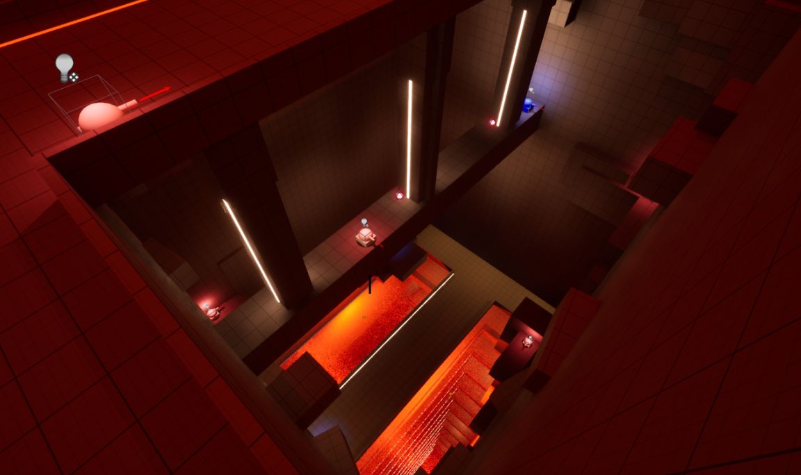 Players ascend the floors of a corporate skyscraper to reach the central mainframe. Core mechanics include fighting automated turrets, timer-based pressure, and multi-path platforming sections. This project's mechanical and level design emphasizes quick decision-making and multiple route options while maintaining clarity with progression.