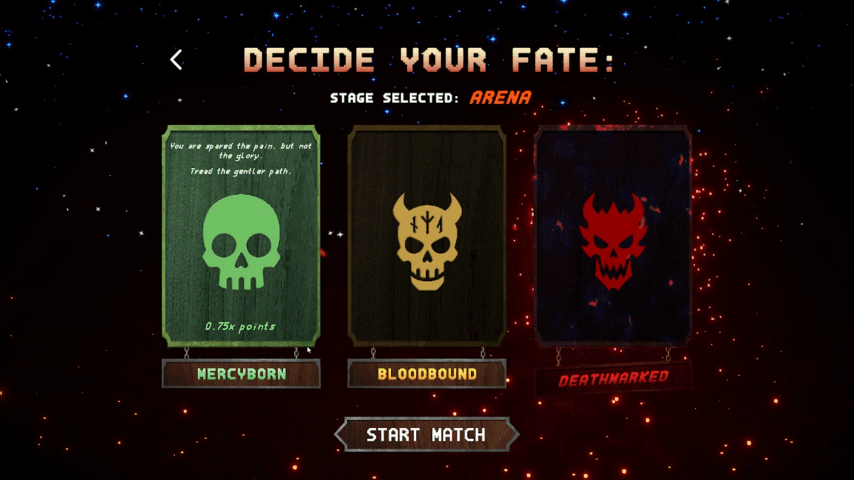 - Match-based upgrade cards that enhance the player's stats as a match progresses