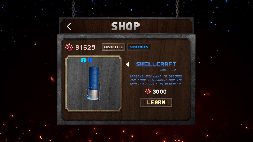 - 12 unique Sorcery upgrades, purchasable through the shop