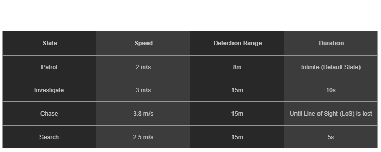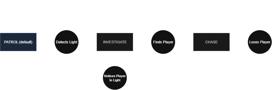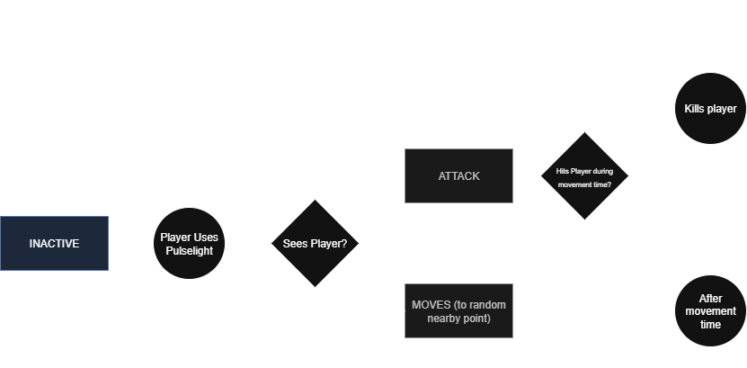 Players needed a persistent threat that punished careless light usage without feeling unfair or overly aware. Fully scripted enemies would be too predictable; fully random would feel chaotic and non-immersive. The AI needed to create tension through their presence while allowing players to avoid and strategically escape encounters.