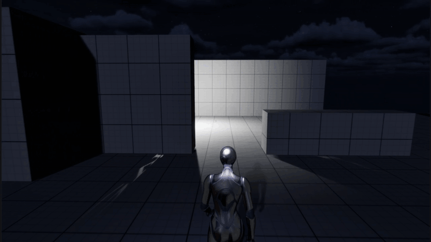 - When the player is standing in the attenuation radius of light sources, a check is done to see if the player is within casted shadows. If the player is not concealed in shadow, detection from enemies builds quickly over 2 seconds as the player is in the light.