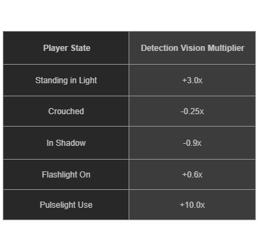 - When illuminating an enemy with the flashlight directly, they become alerted instantly, causing a chase.