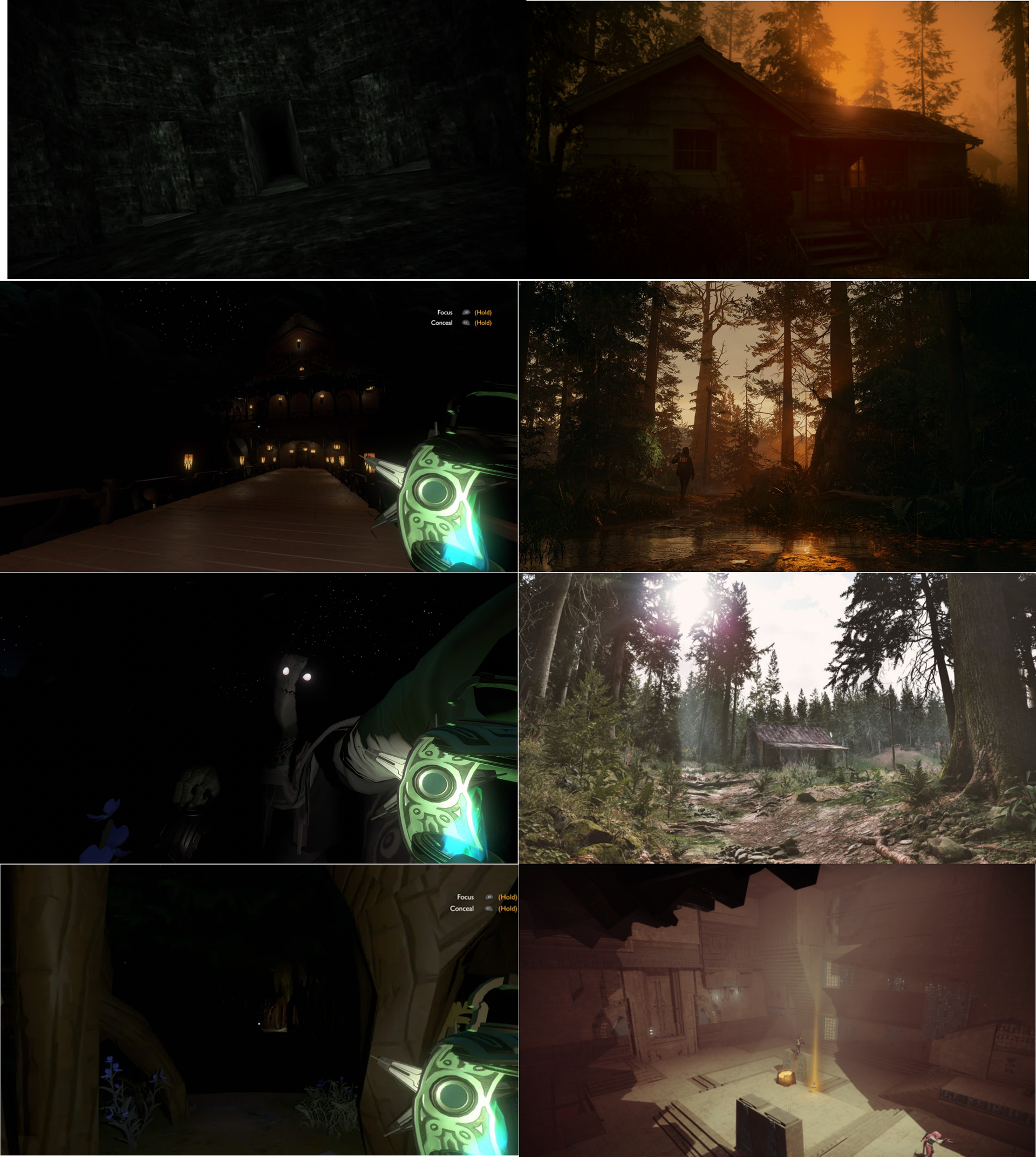 I primarily drew inspiration from Alan Wake 2 and Outer Wilds' forests, both of which utilize darkness and limited UI with environmental audio to build tension. For the final section, I referenced SCP-106's limbo dimension and Destiny 2's Salvation Edge for geometric, alien architecture, contrasting the natural forest environments.